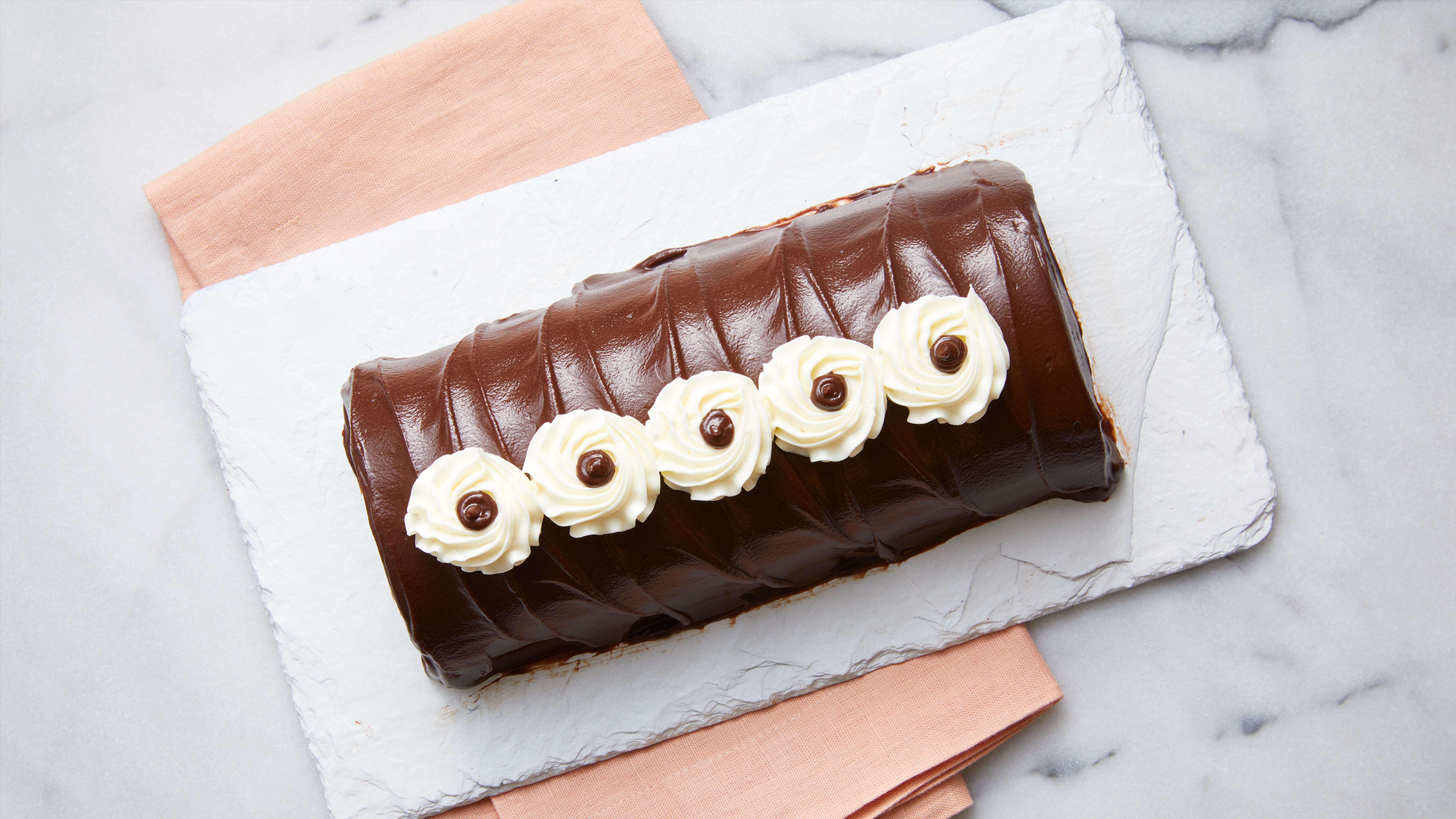 Chocolate sponge cake roll filled and iced with our signature chocolate frosting.