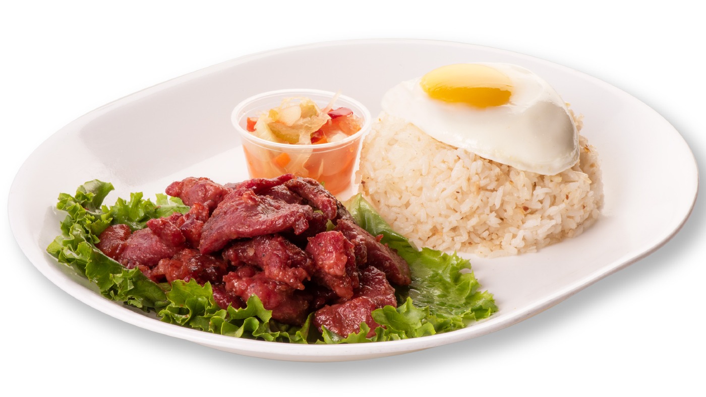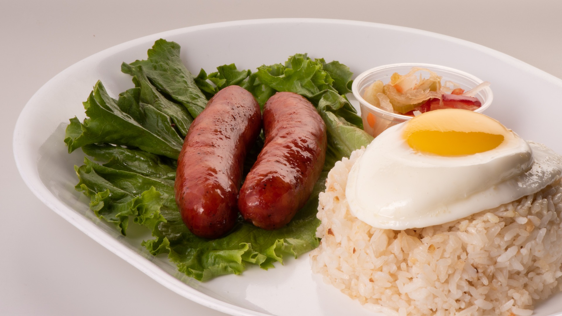 Tasty stir-fried pork sausage infused with garlic, vinegar, and a blend of spices served with Garlic fried rice & an over medium egg.