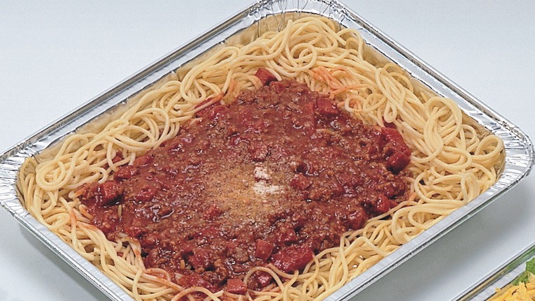 Filipino-style spaghetti with ground beef, pork, and sausages in our sweet tomato sauce and topped with parmesan cheese. Serving for one.