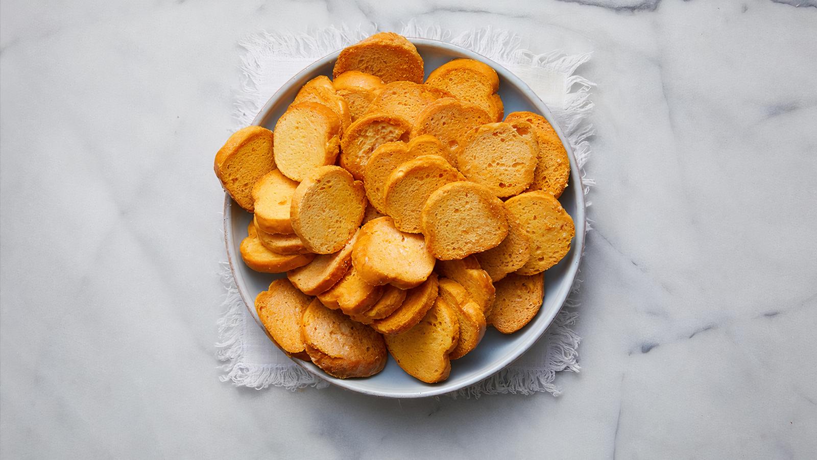 Sweet and buttery twice-baked crispy bread slices. Great with coffee or tea!